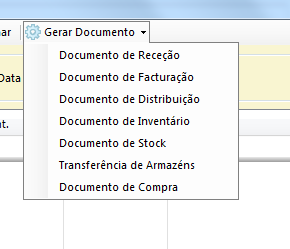Siga os passos na janela para definir o tipo de documento a gerar (receção, faturação, distribuição, etc.).