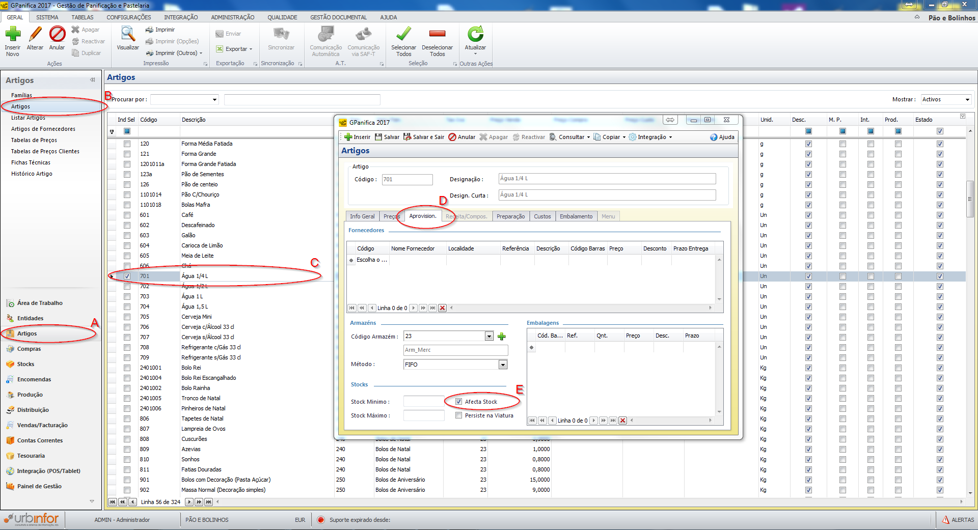 Todos os artigos que pretendam incluir no inventário têm de estar a afetar stock.Como ver se um artigo está a afetar stock?