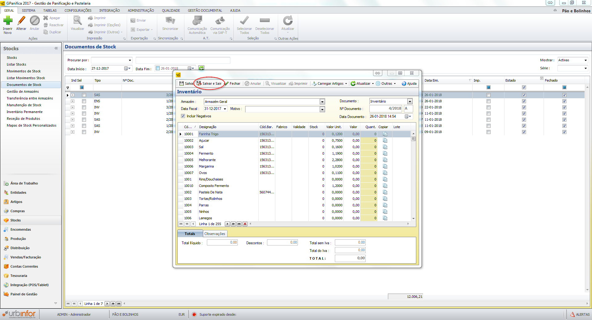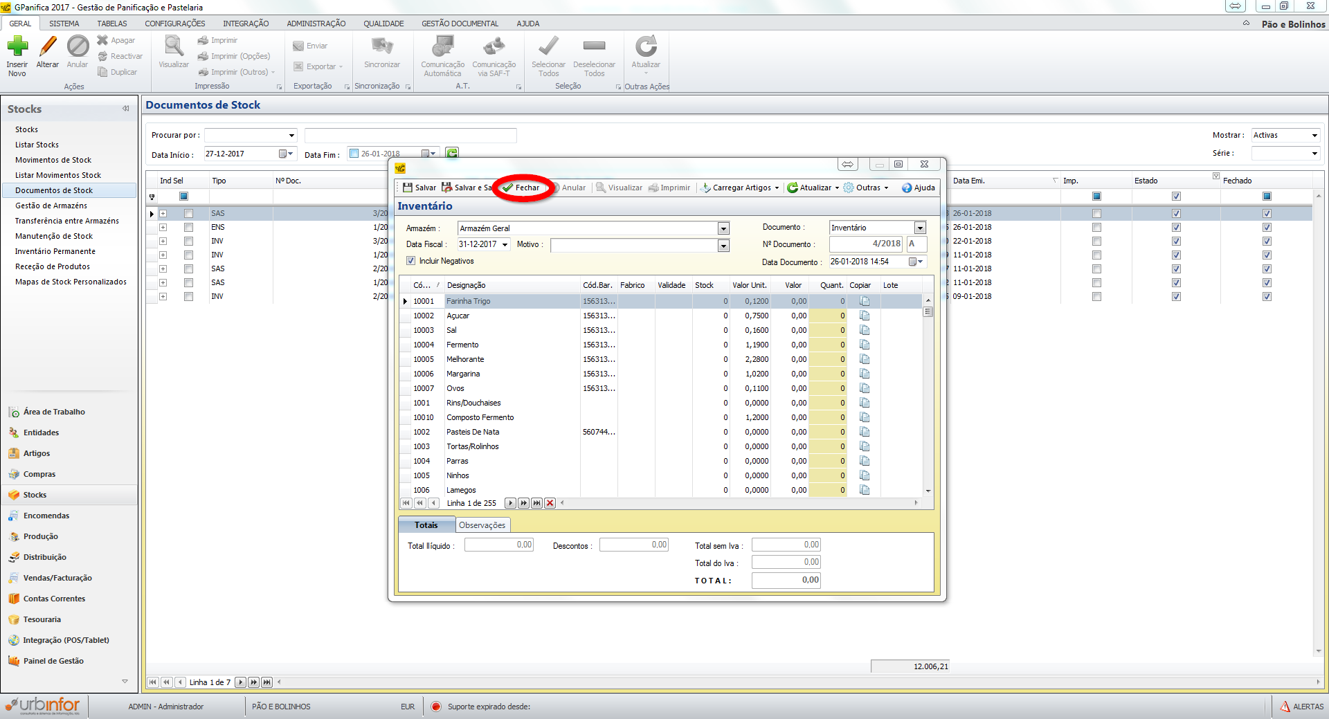 Quanto já tiverem todas as contagens inseridas no documento e pretendem afetar o stock, clicar em Salvar caso ainda não o tenham feto e em Fechar.