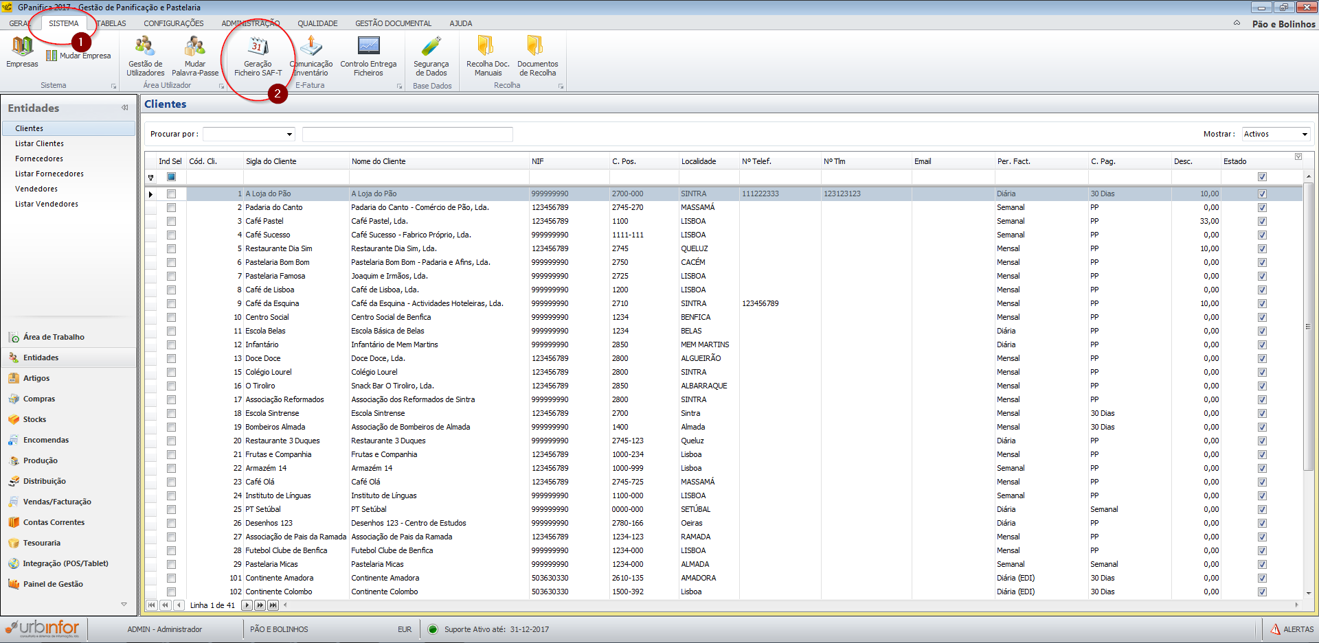 Aceda ao Menu Sistema e selecione Geração Ficheiro SAF-T.