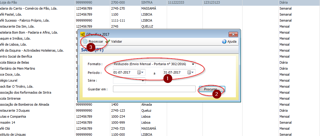 Clicar em Processar para gerar o ficheiro SAF-T.