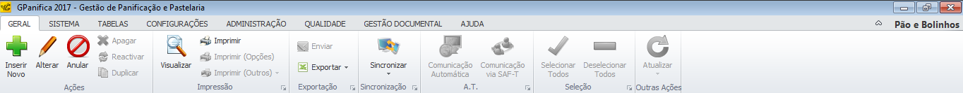 O Menu Geral é transversal a todo o sistema, e as ações que permite executar dependem do módulo em que o utilizador se encontra.