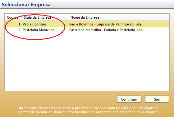 Quando existirem parâmetros definidos para várias empresas, ao entrar na aplicação, será apresentado um ecrã de seleção, permitindo ao utilizador escolher em qual empresa pretende trabalhar.