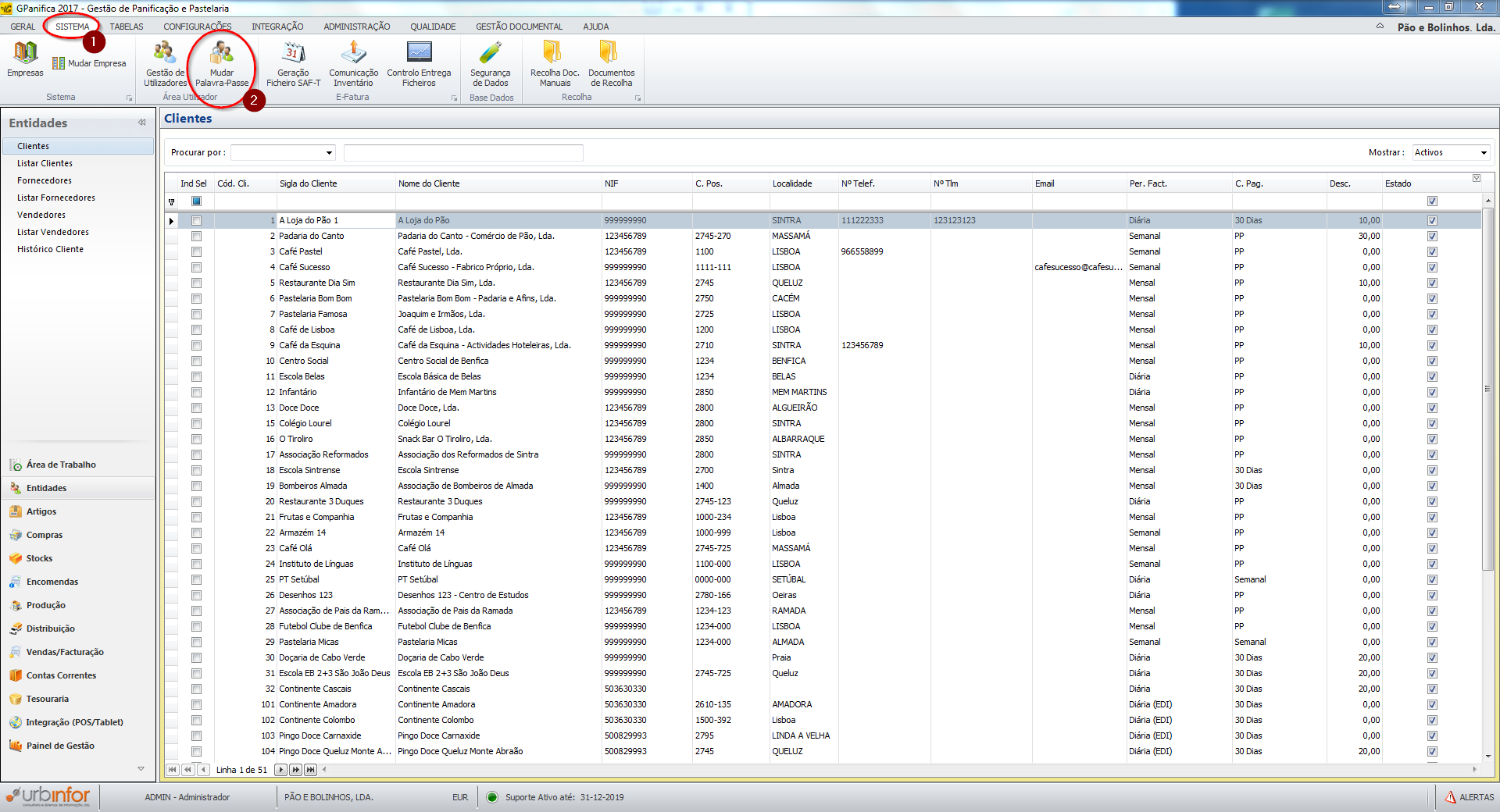 Para alterar a palavra-passe de um utilizador, é necessário ter o software aberto e seguir os passos abaixo: