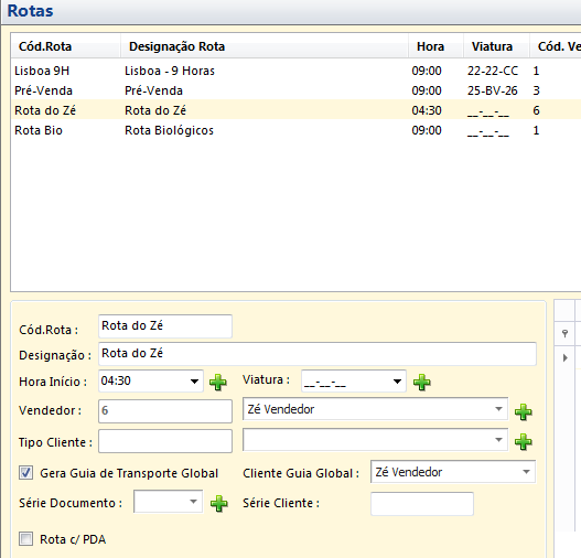 As Rotas de Entrega permitem-nos trabalhar um determinado grupo de clientes associado a um equipamento como um tablet ou um PDA e a um vendedor ou simplesmente associado a um vendedor. É possível no caso de se trabalhar com um equipamento como um tablet ou PDA gerar uma guia de transporte global para que possam gerir stocks se assim optarem.