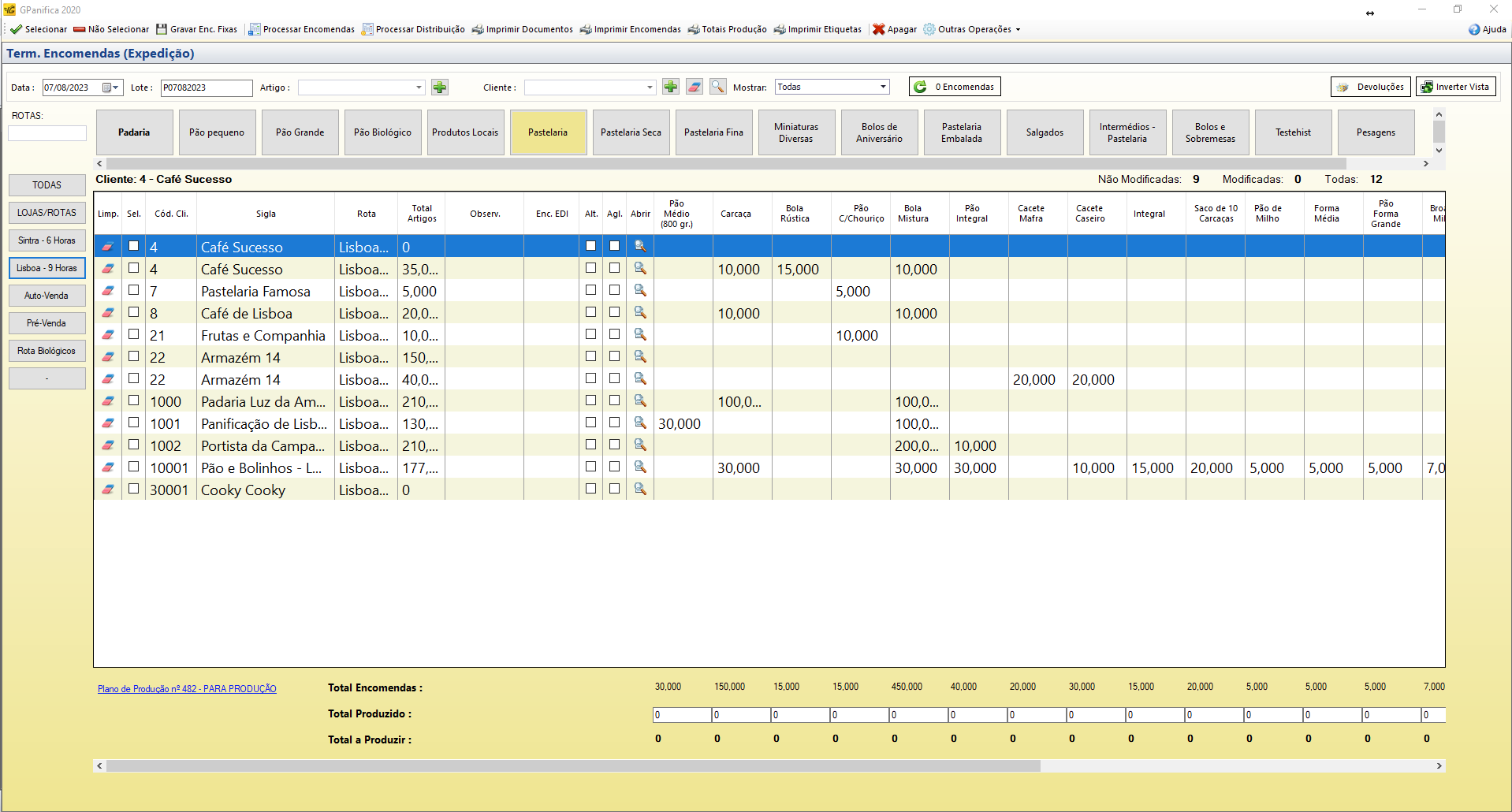 - Processar Encomendas, muitas vezes denominado de "Abrir o Dia", que permite gerar as encomendas do dia selecionado, tendo por base o plano semanal previamente criado